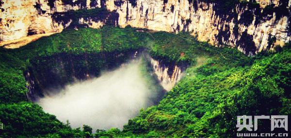 央廣網(wǎng)奉節(jié)10月9日消息 天坑地縫旅游風(fēng)景區(qū)位于奉節(jié)縣荊竹鄉(xiāng)小寨村,是世界上深度和容積最大的巖溶漏斗。天坑口四面絕壁,如斧劈刀削,宏偉壯觀。坑中有無數(shù)幽深莫測(cè)的洞穴和一條洶涌澎湃的暗河。中西探險(xiǎn)家曾多次深入天坑探險(xiǎn), 探明天坑中暗河經(jīng)出水洞流向迷宮河, 推測(cè)天坑中暗河來自神秘的大地縫。