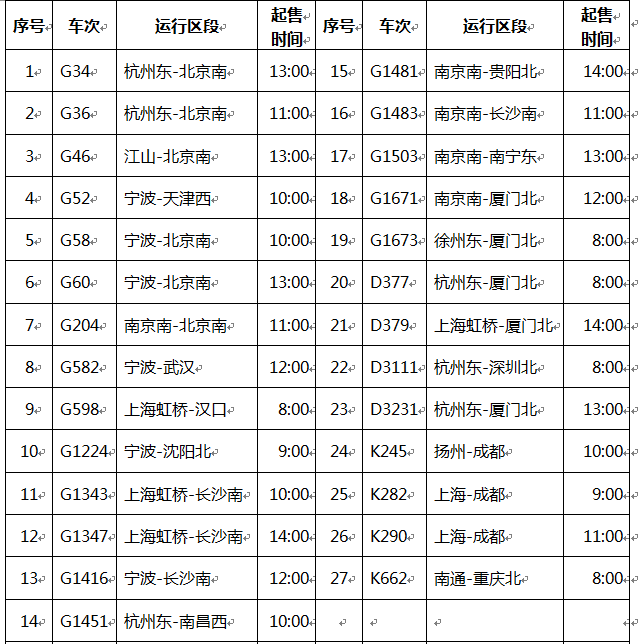 央廣網(wǎng)北京12月31日消息 記者從上海鐵路局獲悉,根據(jù)部分鐵路線路擴能改造施工和維修的進度安排,又一大波列車車票開始發(fā)售。具體如下: