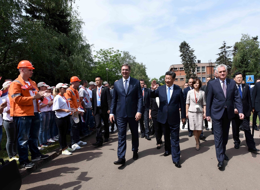 新華社記者丁林 攝 央廣網(wǎng)貝爾格萊德19日消息(記者劉樂 朱敏)19日上午,國(guó)家主席習(xí)近平在貝爾格萊德參觀河鋼集團(tuán)塞爾維亞斯梅代雷沃鋼廠。 習(xí)近平抵達(dá)時(shí),塞爾維亞總統(tǒng)尼科利奇、總理武契奇在停車處熱情迎接。鋼廠工人和家屬、當(dāng)?shù)厥忻駭?shù)千人夾道歡迎。 習(xí)近平發(fā)表了熱情洋溢的講話。習(xí)近平指出,中國(guó)同塞爾維亞傳統(tǒng)友誼深厚,彼此懷有特殊感情,值得我們倍加珍視。在中國(guó)改革開放初期,塞爾維亞人民的成功實(shí)踐和經(jīng)驗(yàn)曾經(jīng)為我們提供了難得借鑒。今天,中塞企業(yè)攜手合作,開啟了兩國(guó)產(chǎn)能合作的新篇章。這既是對(duì)兩國(guó)傳統(tǒng)友誼的延續(xù),也體現(xiàn)了雙方深化改革、實(shí)現(xiàn)互利共贏的發(fā)展決心。中國(guó)企業(yè)一定會(huì)與塞方同行精誠(chéng)合作。我相信,在雙方密切合作下,斯梅代雷沃鋼廠必將重現(xiàn)活力,為增加當(dāng)?shù)鼐蜆I(yè)、提高人民生活水平、促進(jìn)塞爾維亞經(jīng)濟(jì)發(fā)展發(fā)揮積極作用。 習(xí)近平強(qiáng)調(diào),中國(guó)人民走的既是一條獨(dú)立自主、和平發(fā)展之路,也是一條互利共贏、共同繁榮之路。中方期待同塞方繼續(xù)打造更多合作大項(xiàng)目,使中塞合作更好造福兩國(guó)人民。 塞方領(lǐng)導(dǎo)人在致辭中表示,河鋼斯梅代雷沃鋼廠是塞中傳統(tǒng)友誼的又一見證。斯梅代雷沃鋼廠走過了一條坎坷的發(fā)展之路,最終在同偉大、友好的中國(guó)合作中找到了重新激發(fā)活力的希望,揭開了新的歷史一頁。塞中這一合作項(xiàng)目不僅將為塞爾維亞當(dāng)?shù)貛?000個(gè)就業(yè)機(jī)會(huì),改善人民的生活水平,還將為塞中更廣泛合作開辟新的前景。 兩國(guó)領(lǐng)導(dǎo)人共同參觀鋼廠。高大寬敞的熱軋車間內(nèi),機(jī)器轟鳴,熱汽蒸騰,生產(chǎn)線上各種軋鋼鍛材不時(shí)呼嘯而過。習(xí)近平不時(shí)駐足參觀產(chǎn)品,并登上中控室,詳細(xì)詢問工藝環(huán)節(jié),了解生產(chǎn)情況。 隨后,習(xí)近平在塞方領(lǐng)導(dǎo)人陪同下,來到員工食堂同工人交流互動(dòng)。習(xí)近平高度評(píng)價(jià)中塞人民的傳統(tǒng)友誼,勉勵(lì)工人們努力開拓,提高鋼廠綜合競(jìng)爭(zhēng)力,使鋼廠合作項(xiàng)目早結(jié)碩果,惠及當(dāng)?shù)厝嗣瘛? 斯梅代雷沃鋼廠成立于1913年,是該地區(qū)知名的百年老廠。今年4月,中國(guó)河鋼集團(tuán)投資該廠,使其擺脫經(jīng)營(yíng)危機(jī),重現(xiàn)活力。 參觀鋼廠前,習(xí)近平抵達(dá)阿瓦拉山紀(jì)念碑公園,向塞爾維亞無名英雄紀(jì)念碑敬獻(xiàn)花圈,并在紀(jì)念簿上留言。 同日,習(xí)近平還出席了尼科利奇、武契奇共同舉行的午宴。 王滬寧、栗戰(zhàn)書、楊潔篪等參加上述活動(dòng)。