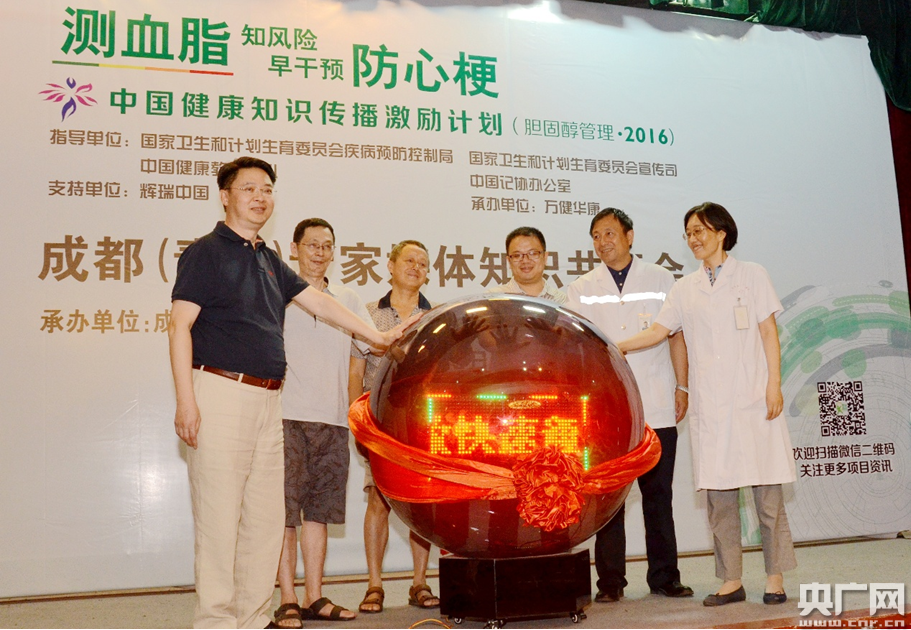 央廣網(wǎng)成都8月24日消息(記者馮會玲)由國家衛(wèi)生計(jì)生委和中國記協(xié)聯(lián)合發(fā)起、輝瑞中國支持的“中國健康知識傳播激勵(lì)計(jì)劃(膽固醇管理?2016)”知識共享會來到成都青羊,本次青羊知識共享會的主題為“測血脂,防心梗,快急救”,由成都市青羊區(qū)人民政府承辦、成都市第三人民醫(yī)院協(xié)辦。這是該主題活動(dòng)第三次走進(jìn)成都,以“膽固醇管理”為核心內(nèi)容,呼吁全社會行動(dòng)起來,管好膽固醇,加強(qiáng)“防、治、救”工作,保護(hù)血管健康。