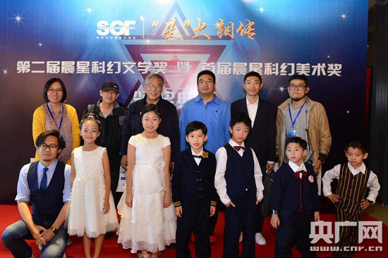 央廣網(wǎng)深圳11月27日消息(記者 于揚(yáng))11月26日下午,由中國首個科幻公益基金——深圳市科學(xué)與幻想成長基金分別與深圳市南山區(qū)科學(xué)技術(shù)協(xié)會、深圳市福田區(qū)文化體育局聯(lián)合主辦的第二屆“晨星”科幻文學(xué)獎、第一屆“晨星”科幻美術(shù)獎頒獎典禮在深圳市市民中心B座,工業(yè)展覽館多功能廳隆重舉行。頒獎典禮以“‘星’火相傳”作為主題,在頒獎的過程中回顧了中國科幻創(chuàng)作和科幻產(chǎn)業(yè)的發(fā)展歷程。深圳市福田區(qū)委副書記、社工委主任余智晟,南山科協(xié)常務(wù)副主席張漢國出席了頒獎典禮。深圳市科學(xué)幻想成長基金負(fù)責(zé)人介紹,今年的兩項(xiàng)“晨星”科幻大獎在保持自身公益性、繼續(xù)資助未完成創(chuàng)作的長篇科幻小說作品的特色基礎(chǔ)上,進(jìn)一步擴(kuò)大了賽事規(guī)模、提高了獎金和資助金總額。全部16個獎項(xiàng)共計(jì)頒發(fā)獎金30.5萬元、資助金8萬元,無論是獎項(xiàng)規(guī)模還是獎金總額都比去年提高了一倍有余。