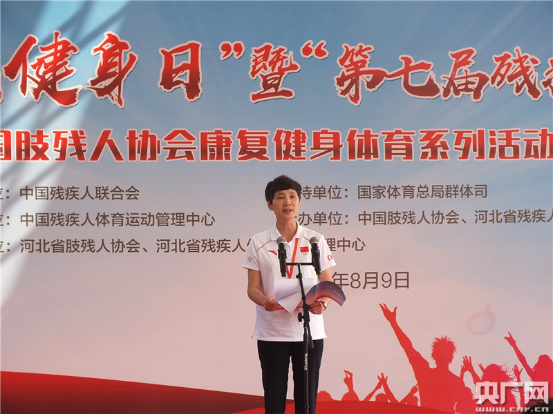 中國殘聯(lián)副理事長王梅梅宣布全民健身日暨第七屆殘疾人健身周中國肢殘人協(xié)會康復健身體育系列活動開始。