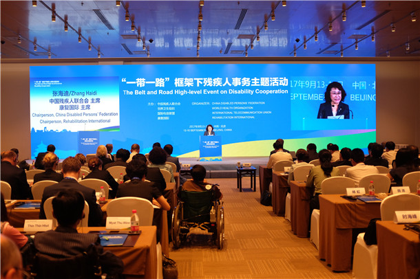 9月14日上午,“一帶一路”框架下殘疾人事務主題活動在北京國家會議中心正式開幕。來自世界衛(wèi)生組織、國際電信聯(lián)盟、康復國際、國際殘疾人聯(lián)盟、紅十字國際委員會等國際組織和“一帶一路”沿線30余個國家的150余名外方代表以及來自國務院殘疾人工作委員會成員單位、全國殘聯(lián)系統(tǒng)和國內(nèi)外輔助器具工商企業(yè)的代表共400余人出席開幕式。