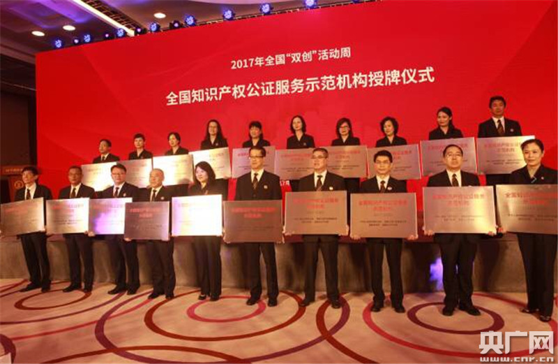 全國知識(shí)產(chǎn)權(quán)公證服務(wù)示范機(jī)構(gòu)授牌暨中國知識(shí)產(chǎn)權(quán)公證服務(wù)平臺(tái)開通儀式現(xiàn)場(chǎng)(王建軍 攝)