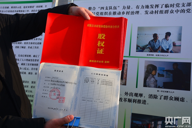 黃陵縣農(nóng)村集體股份經(jīng)濟(jì)合作社產(chǎn)權(quán)證(央廣網(wǎng) 陳銳海攝)
