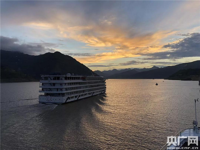 圖為重慶云陽(yáng)江面及火燒云(央廣網(wǎng)記者 陳兆國(guó) 攝)
