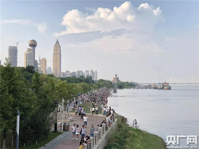 圖為武漢江邊游人如織(央廣網(wǎng)記者 陳兆國(guó) 攝)