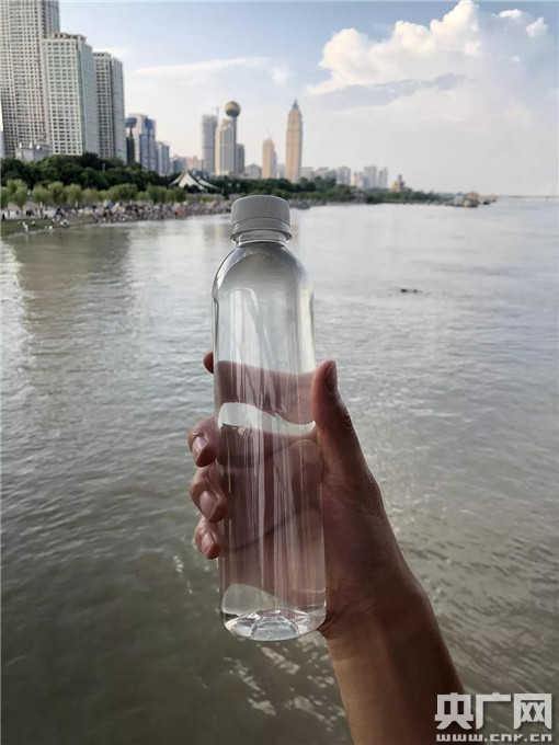 圖為從漢水與長(zhǎng)江交匯處取的水(央廣網(wǎng)記者 陳兆國(guó) 攝)