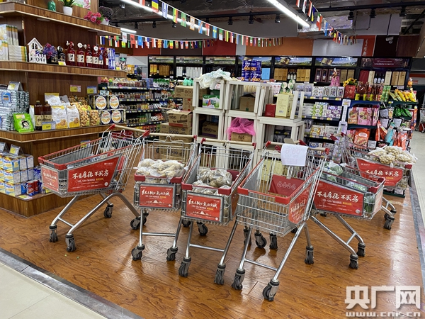 記者在超市內(nèi)看到,包括蔬菜、水果、雞蛋、飲用水在內(nèi)的生活物資品種齊全。超市工作人員楊宏斌告訴記者,超市的貨品由相應(yīng)的基地直供,目前貨源充足,價格穩(wěn)定。