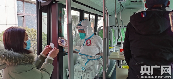 石家莊市公共交通總公司1路車隊(duì)副書記吳靜告訴記者:“現(xiàn)在天氣特別寒冷,要檢測的居民也特別多,我們就把公交車變成檢測車,投放到各個(gè)社區(qū)。”