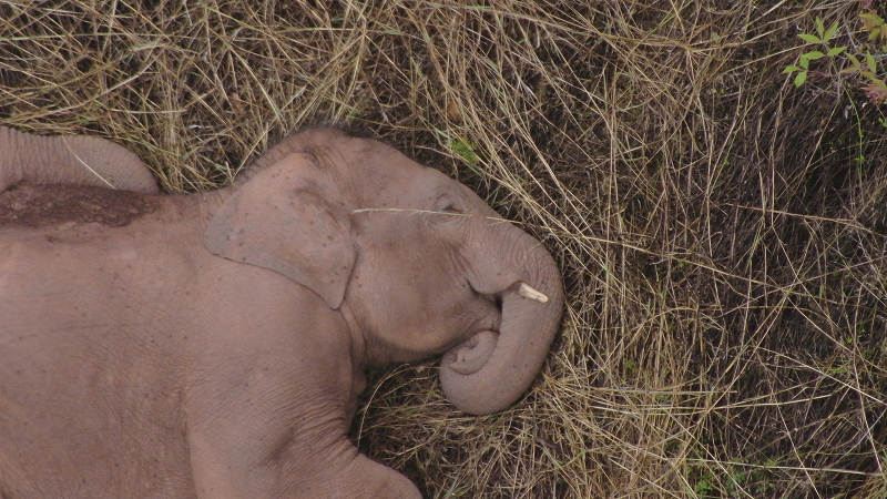 6月7日9時(shí)27分,云南省森林消防總隊(duì)無人機(jī)監(jiān)測任務(wù)分隊(duì)監(jiān)測顯示,亞洲象群在晉寧區(qū)夕陽鄉(xiāng)賴家新村山林地里睡覺休息(央廣網(wǎng)發(fā) 云南省森林消防總隊(duì)供圖)
