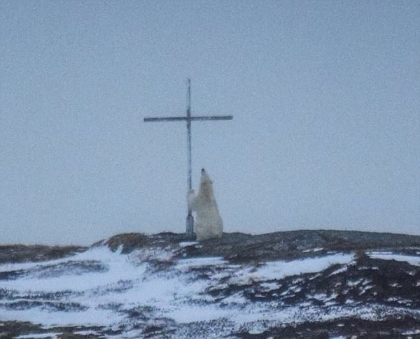 近日,加拿大22歲的女?dāng)z影師杰西卡安德魯斯在紐芬蘭無意間捕捉到了一只北極熊對著十字架“祈禱”的畫面,沒想到北極熊竟也能如此虔誠。