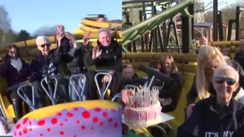 近日,英國人瑞萊諾斯為慶祝105歲生日,跑到游樂園坐云霄飛車,上次坐云霄飛車時她才20多歲,因為這一飛老人成為吉尼斯世界紀錄最年長的云霄飛車乘客。