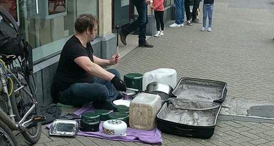 很多游走的街頭藝人會(huì)選擇商場(chǎng)周邊的熱鬧地方作為自己的表演場(chǎng)地。近日,英國(guó)薩默塞特郡的一名頗有藝術(shù)創(chuàng)造力街頭藝人就坐在商場(chǎng)門前,利用鍋碗瓢盆演奏了一首美妙的樂(lè)曲。