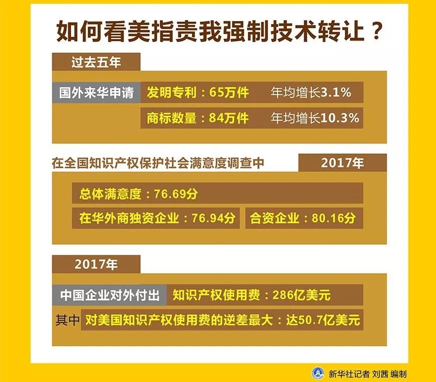 王受文還解釋道,外國企業(yè)向中國出口產(chǎn)品,中國的大門是敞開的,如果外企想要把技術(shù)賣到中國,也完全是自愿的,沒有任何障礙。盡管少部分行業(yè)要求中外合資,但合資并非意味著強(qiáng)制技術(shù)轉(zhuǎn)讓。