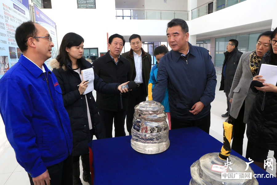 中央人民廣播電臺(tái)《行進(jìn)中國 精彩故事》系列報(bào)道:絲路新雨。中央人民廣播電臺(tái)臺(tái)長(zhǎng)王求采訪蘭石集團(tuán)出城入園搬遷改造產(chǎn)業(yè)升級(jí)項(xiàng)目。(央廣網(wǎng)記者 杜虎 攝)