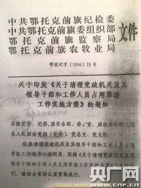 鄂托克前旗紀(jì)委等部門(mén)聯(lián)合發(fā)文(央廣網(wǎng)記者 白宇 攝)