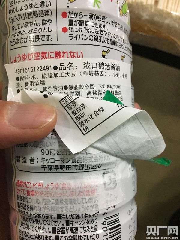 日本產(chǎn)醬油,撕開中文標(biāo)簽,生產(chǎn)地址為千葉縣