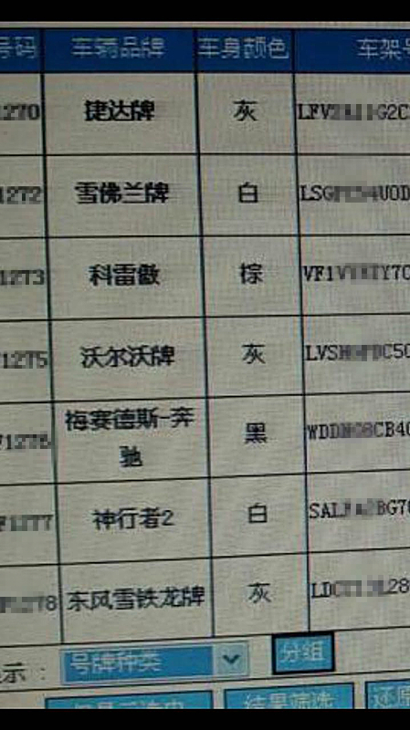 之后,該男子發(fā)給了記者一個(gè)表格,里面按照車(chē)牌號(hào)數(shù)字順序排列著七輛車(chē)的信息,除了車(chē)牌號(hào)外,車(chē)輛品牌、車(chē)身顏色、車(chē)架號(hào)一覽無(wú)余,他讓記者從這些北京注冊(cè)的車(chē)?yán)镞x一個(gè)滿意的用作“頂包”。