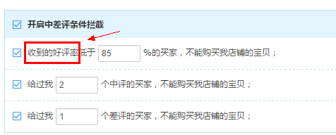 劉小姐介紹,這種好評(píng)率攔截并非淘寶賣家平臺(tái)的自帶功能,而是通過(guò)需要通過(guò)安裝第三方插件來(lái)實(shí)現(xiàn)。它可以設(shè)置對(duì)好評(píng)率低于多少的買家進(jìn)行攔截。