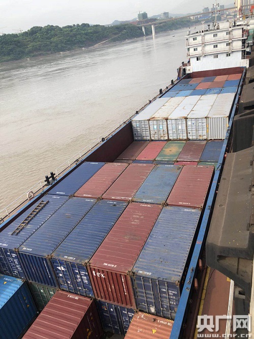央廣網(wǎng)瀘州7月28日消息(記者管昕)據(jù)中國之聲《新聞縱橫》報道,大江東流,曲水如磐。在四川省最大的港口瀘州港,夕陽下,一座橋吊正把集裝箱吊起,從?吭诮叺呢涊喩现苻D(zhuǎn)到拖車上。