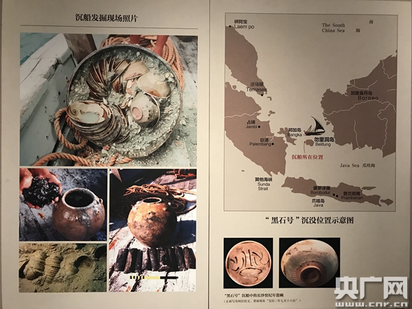 1998年,印度尼西亞的勿里洞島海域,一艘沉沒多年的船舶被打撈出水。令人驚嘆的是,出水的67000件貨物里,竟然有56000件瓷器。從刻有“寶歷二年七月十六日”(公元826年)的瓷碗題記推斷,沉船為公元9世紀(jì)上半葉。經(jīng)過專家學(xué)者鑒定,終于確認(rèn)這是1200年前的阿拉伯帆船“黑石號”,滿載的是來自中國唐朝的貨物。而這56000件瓷器,都來自中國長沙窯。