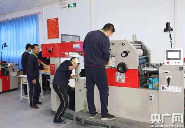 學(xué)員在教培中心印刷廠操作印刷機(jī)器。(央廣記者 吳卓勝 攝)