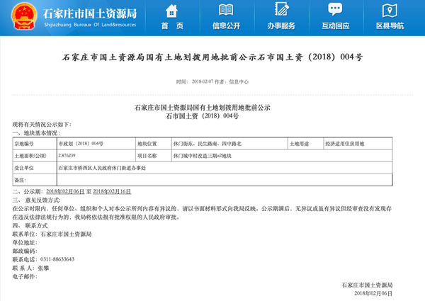 石家莊市國土局官網(wǎng)發(fā)布的國有土地劃撥用地批前公示(網(wǎng)頁截圖)