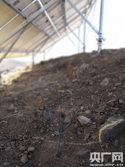 光伏板下僅存的樹(shù)苗(央廣記者 任夢(mèng)巖攝)