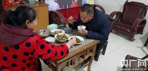 晚上夫妻倆一起吃晚飯(中央廣播電視總臺央廣記者 胡曉輝 攝)