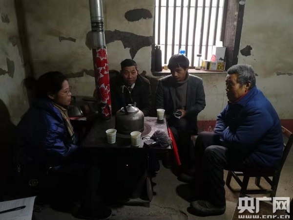 村支書鐘雅和村監(jiān)委會(huì)主任姬太志在村民家里進(jìn)行愛心超市兌換獎(jiǎng)勵(lì)打分(中央廣播電視總臺(tái)央廣記者 溫超 攝)