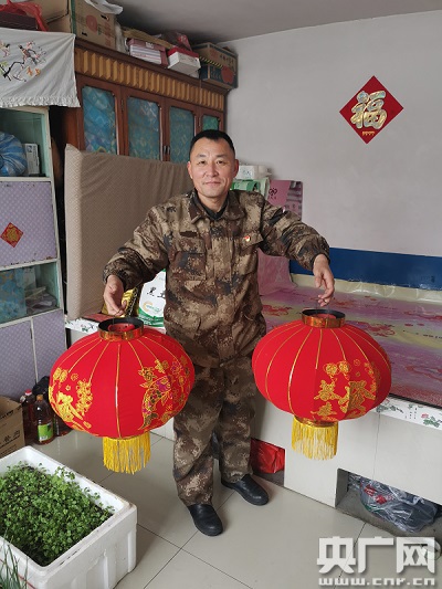 春節(jié)將至,郭景運給貧困戶送去新春燈籠(中央廣播電視總臺央廣記者 馮志遠 攝)