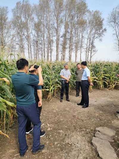 縣里面帶技術(shù)員來查看玉米長勢(央廣網(wǎng)發(fā) 郭景運提供)