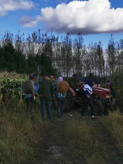 貧困戶們在操作機器收獲甜玉米(央廣網(wǎng)發(fā) 郭景運提供)