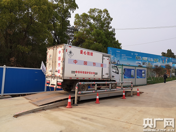 中節(jié)能應(yīng)急處置中心轉(zhuǎn)運(yùn)醫(yī)廢的車輛(中央廣播電視總臺(tái)央廣記者 肖源 攝)