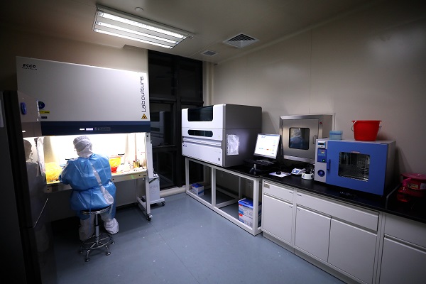 北京天壇醫(yī)院是新冠肺炎疫情發(fā)生以來(lái),主管部門新批準(zhǔn)的新冠病毒核酸檢測(cè)機(jī)構(gòu)之一。天壇醫(yī)院實(shí)驗(yàn)診斷中心主任張國(guó)軍介紹,他們?cè)?月26日(正月初二)接到通知,準(zhǔn)備開展新冠病毒核酸檢測(cè)工作,隨后擬定工作流程,在現(xiàn)有的基因擴(kuò)增(PCR)實(shí)驗(yàn)室基礎(chǔ)上完善功能,比如為負(fù)壓房加裝壓力表,讓安全狀況更加直觀。張國(guó)軍說:“從標(biāo)本的采集、運(yùn)送、管理、檢驗(yàn),到性能的評(píng)估,再到最后結(jié)果的報(bào)告,我們用一周的時(shí)間基本上就完成了整個(gè)流程的梳理。我們?cè)跇堑览锩嬗旨友b了一些紫外燈和壓力表!