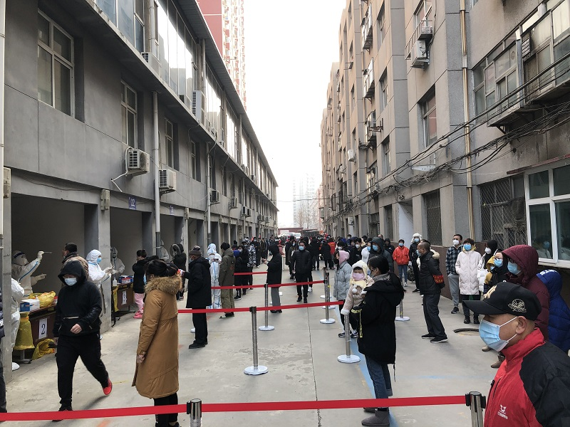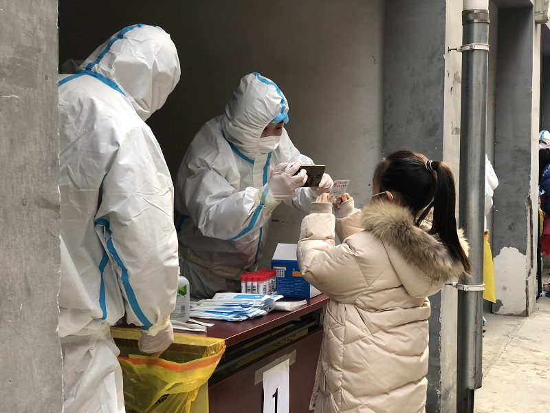 雷妮娜住在石家莊市橋西區(qū)紅旗街道的豐河苑社區(qū),社區(qū)居民9000多人。1月6日,石家莊市開(kāi)始進(jìn)行第一輪全員核酸檢測(cè),雷妮娜所住的小區(qū)也迅速開(kāi)展。雷妮娜回憶說(shuō):“剛開(kāi)始(因?yàn)椋┐蠹沂堑谝淮谓?jīng)歷,有點(diǎn)亂。當(dāng)時(shí)在排隊(duì)的時(shí)候,就有人主動(dòng)站出來(lái)幫忙維持秩序。我們也想著看看有沒(méi)有需要幫忙的。后面社區(qū)需要志愿者去做什么工作的時(shí)候,就會(huì)在群里面發(fā)消息,然后我們回應(yīng),去簽到就行,(社區(qū))就會(huì)給安排一些工作!