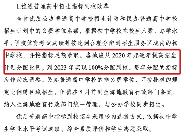 根據(jù)昆明市教育體育局發(fā)布的2021年中考六問六答,此次改革的核心是指標到校。從2021年起,增設優(yōu)質(zhì)普通高中劃出一定比例的招生名額分配到招生區(qū)域內(nèi)所有初中學校的招生方式,簡稱為“配額生招生”,今年的“配額生”指標為40%。