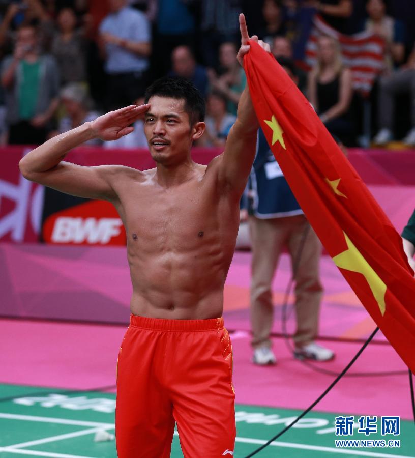 8月5日,林丹慶祝勝利(圖片來源:新華社)
