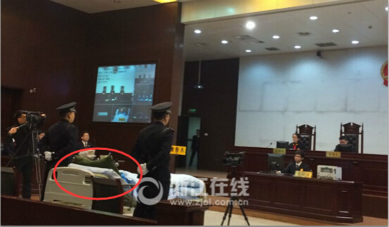 包來旭是當(dāng)時受傷最重的一名傷員,全身燒傷面積達(dá)到95%以上,后來經(jīng)過醫(yī)院治療,雙腿腳踝以下的部分已經(jīng)被截肢。今天在審判長宣布開庭的時候,包來旭被四名警察抬上了法庭的被告席,包來旭躺在病床上出庭受審。