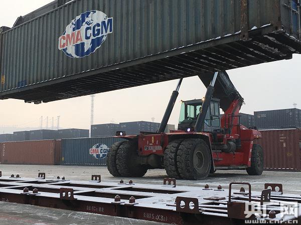 向西行國際班列吊裝貨物,準(zhǔn)備出發(fā)!