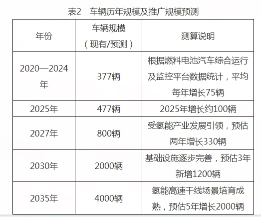 《規(guī)劃》預(yù)計全市氫燃料電池汽車投用量在2027年將達(dá)到800臺,在2030年達(dá)到2000臺,在2035年達(dá)到4000臺。