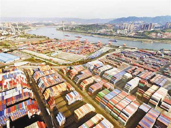 圖為重慶自貿(mào)試驗區(qū)兩路寸灘保稅港區(qū)集裝箱堆場。(重慶日報資料圖片)