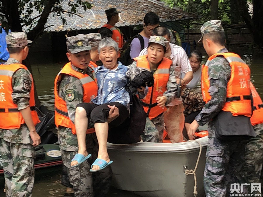 由于上游洪水來勢兇猛,巴南區(qū)一些老舊社區(qū)群眾沒有來得及撤離,面臨洪水淹沒危險。 重慶預(yù)備役旅官兵們投入緊張抗洪搶險中,轉(zhuǎn)移重慶市巴南區(qū)龍洲灣百節(jié)社區(qū)被困群眾;花溪街道鎮(zhèn)安橋片區(qū)因洪峰過境導(dǎo)致該片區(qū)停電,部分商戶門面打不開。消防人員幫助群眾打開卷簾門,轉(zhuǎn)移物資;巴南區(qū)藍天救援隊在巴縣大道浩力大廈路段,將因手術(shù)受傷行動不便的女孩一家人成功轉(zhuǎn)移。