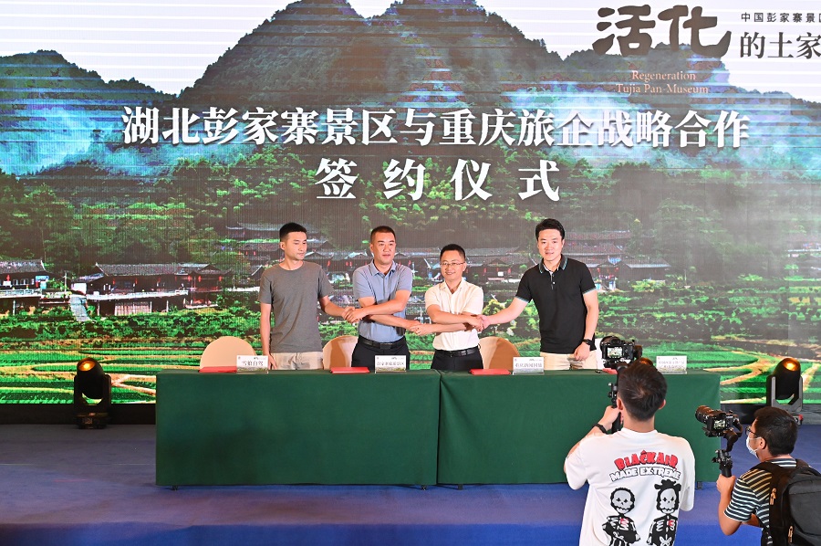 推介會上,宣恩彭家寨景區(qū)代表與重慶新聞國際旅行社、雪狼自駕、中國西部文創(chuàng)研究院代表簽訂了戰(zhàn)略合作協(xié)議,為未來雙方文化和旅游產(chǎn)業(yè)發(fā)展等方面建立交流合作機(jī)制、創(chuàng)造更多的合作機(jī)會。