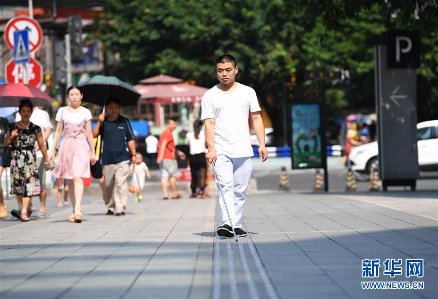 8月1日,一名盲人行走在重慶市江北區(qū)紅石路一商場(chǎng)附近的不銹鋼盲道上 新華社記者王全超 攝 今年以來(lái),重慶市江北區(qū)市政園林管理局對(duì)主要商場(chǎng)、超市、通信服務(wù)網(wǎng)點(diǎn)、銀行網(wǎng)點(diǎn)周邊的無(wú)障礙設(shè)施情況進(jìn)行逐一排查,對(duì)經(jīng)營(yíng)場(chǎng)所與市政道路之間缺乏盲道的點(diǎn)位擬制改造完善計(jì)劃。截至目前,已改造完善經(jīng)營(yíng)公共場(chǎng)所點(diǎn)位30余處,安裝不銹鋼盲道1000余米,改造無(wú)障礙坡道近20處,有效提升了盲人出行的便利性和安全感。 -