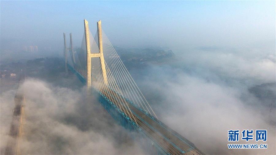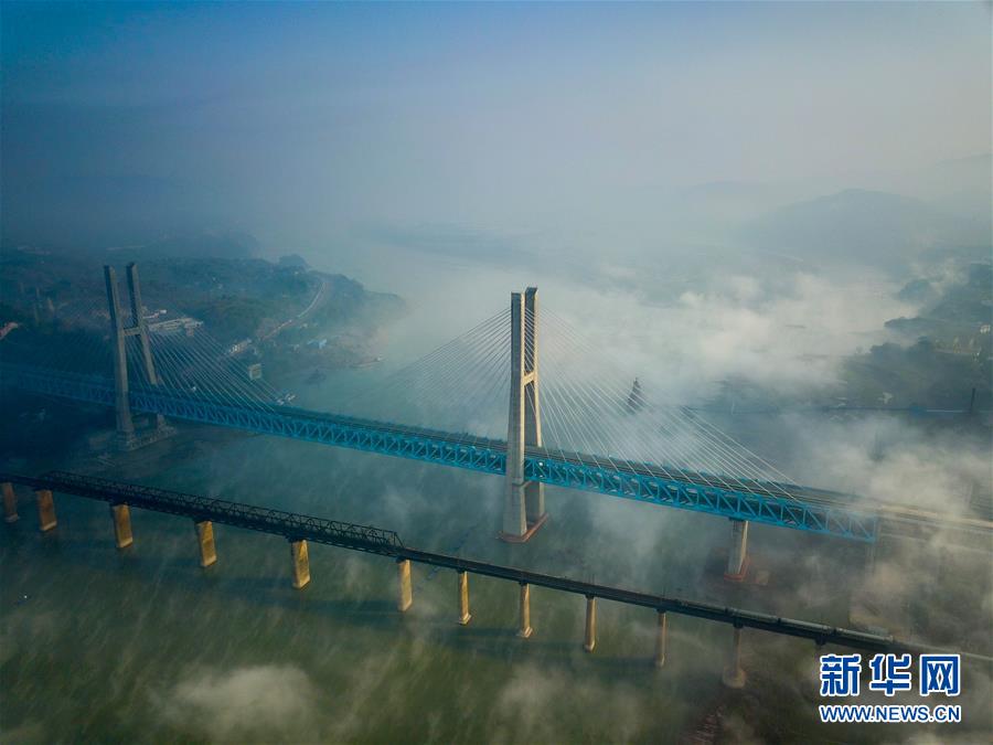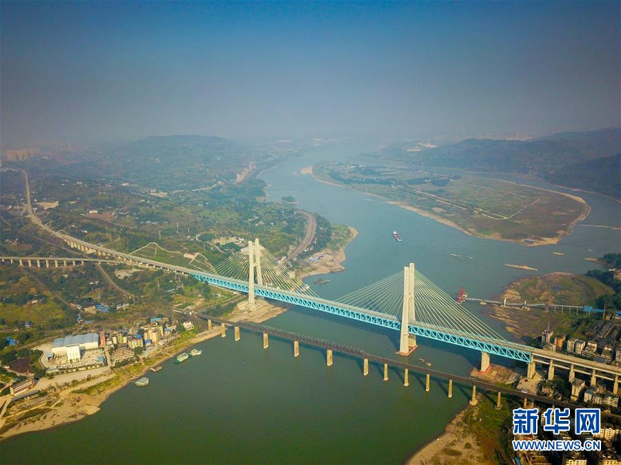 這是1月9日拍攝的新白沙沱長江特大橋。經(jīng)過5年艱苦建設,位于重慶江津的世界首座雙層六線鋼桁梁鐵路斜拉橋——新白沙沱長江特大橋近日落成,與即將開通的渝貴鐵路一起進入檢測試運行階段。新白沙沱長江特大橋全線長約5.32公里,其中主橋全長920米,是渝貴鐵路跨越長江的重要通道和關鍵控制性工程。該橋上層為四線客車線,設計時速200公里;下層為兩線貨車線,設計時速120公里。據(jù)介紹,渝貴鐵路開通后,列車通過這座大橋最快僅需16.56秒。新華社記者 韓曄 攝 -