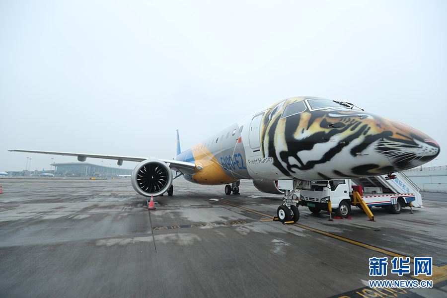 2月12日早上08:30分,一架外觀噴涂為老虎的巴西航空工業(yè)ERJ-190-E2客機降落重慶江北國際機場,在經(jīng)過近3小時停留加油后,于11:16分安全起飛前往哈薩克斯坦。據(jù)了解,這次停留主要是給飛機補充燃油。飛機從新加坡起飛,經(jīng)停重慶“吃飽喝足”后,飛往哈薩克斯坦阿拉木圖進行下一站演示。新華網(wǎng)發(fā)(重慶江北國際機場供圖)