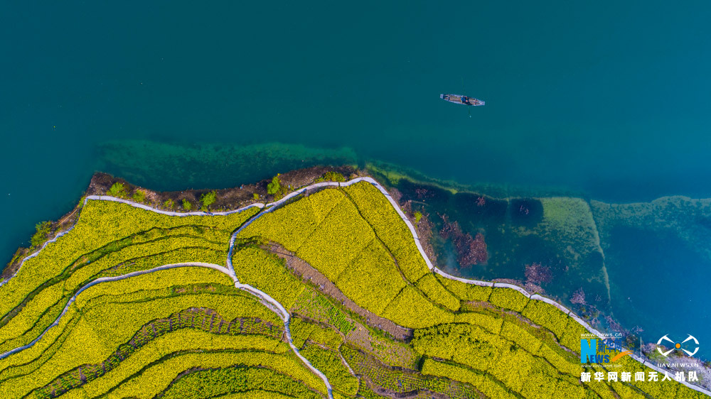 陽春三月,春水初生,花海漸盛。在重慶市黔江區(qū)阿蓬江畔,油菜花海沿著江岸蔓延開來,正是半江春色半江水。圖為無人機(jī)航拍重慶阿蓬江春色,詩情畫意濃。新華網(wǎng)發(fā)(王江龍 攝) -