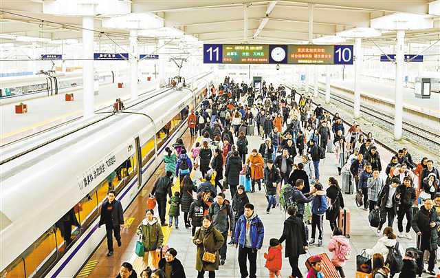 當日,旅客在重慶北站站臺有序上下車。重慶主城區(qū)火車站預計全天發(fā)送旅客超過20萬人次。